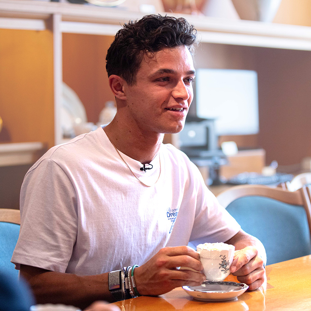 Herend Porcelain Manufactory makes the racing helmet used by Formula 1 driver Lando Norris in the Hungarian race with a unique pattern, signed by the F1 driver in Herend.
