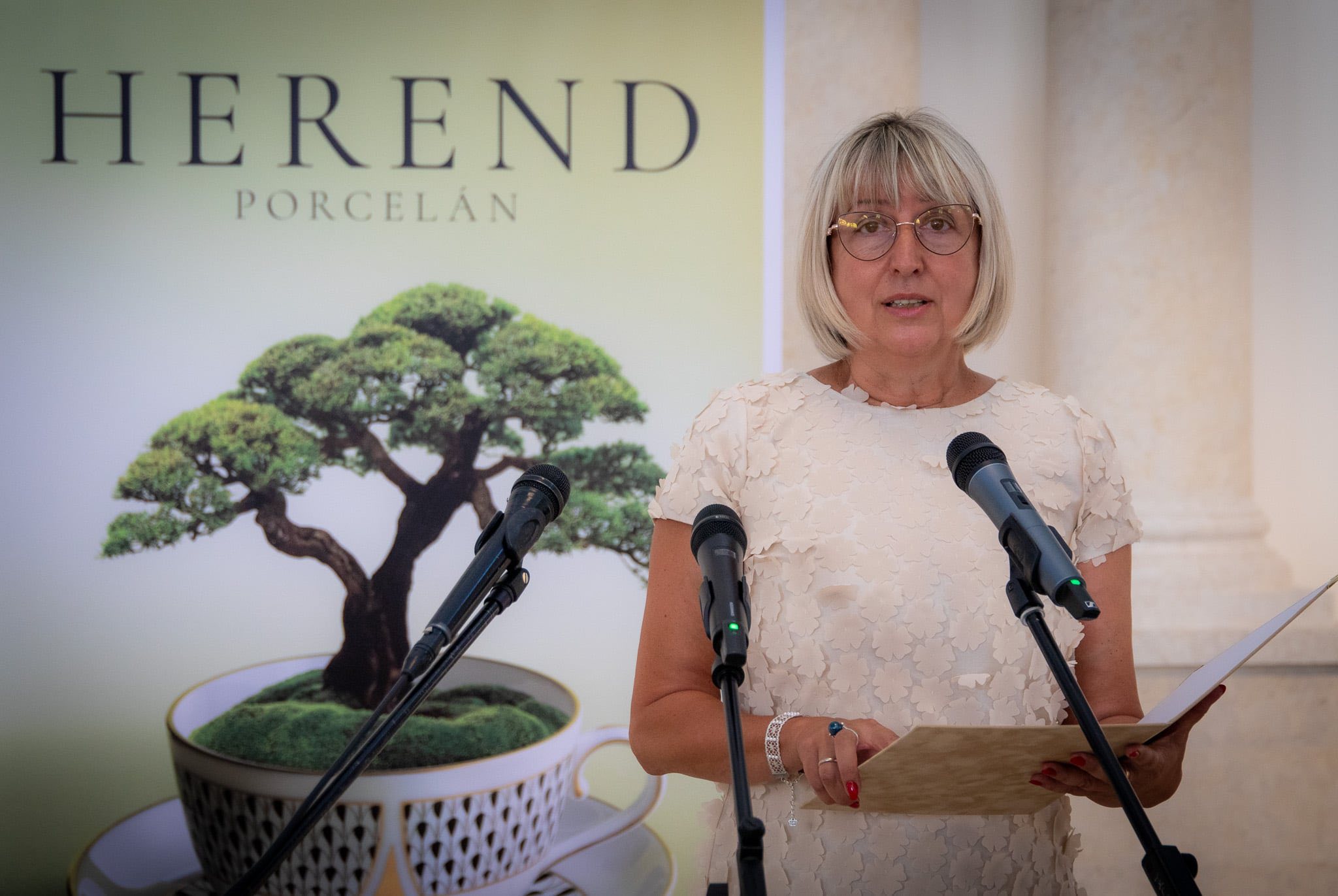 Dr. Simon Attila, a Herendi Porcelánmanufaktúra vezérigazgatója kiemelte: a herendi porcelán alkotások nem egyszerű használati tárgyak, hanem mind műalkotási értéket hordoznak. Minden egyes darabban ott rejlik a világ teljessége, a négy őselem ereje, és miközben tükrözik a tradíció gyökereit, a megújulás képességét is magukban hordozzák.